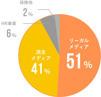 法律・弁護士業界とインターネットを結びつけたリーガルメディア事業を中心に、人材紹介のHR事業や保険事業を展開
