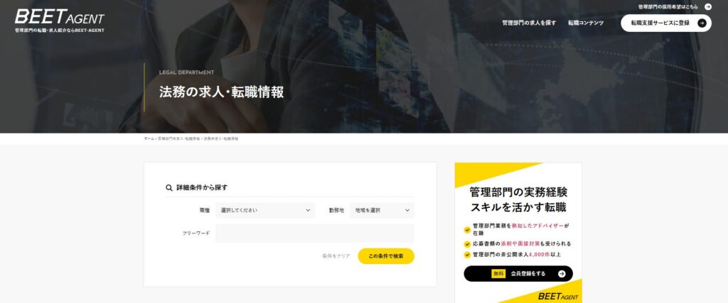 BEET-AGENTの法務求人は、ここから確認することができます。