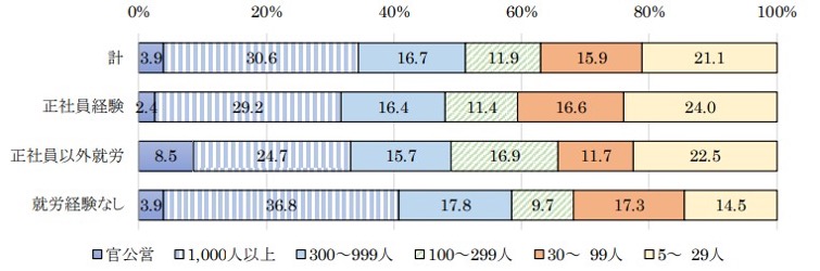 引用元:3年以内既卒就職者の就職先の企業規模|労働政策研究・研修機構