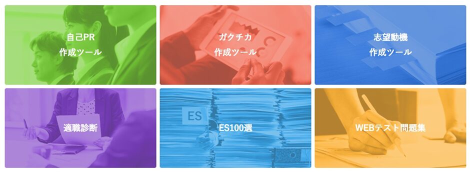 とくに、志望動機生成ツール・自己PR生成ツール・内定者ES閲覧サービスなど初心者でも迷わず選考準備ができる環境が充実している点が最大の魅力。